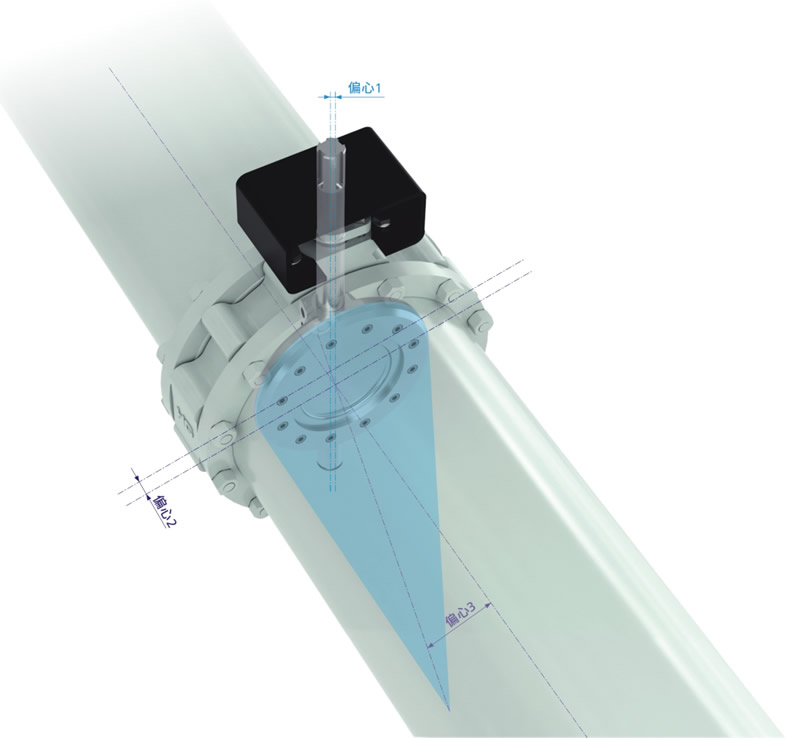 閥軸中心線偏離管道和閥門中心線,這就免受閥門開啟和關(guān)閉的干擾。