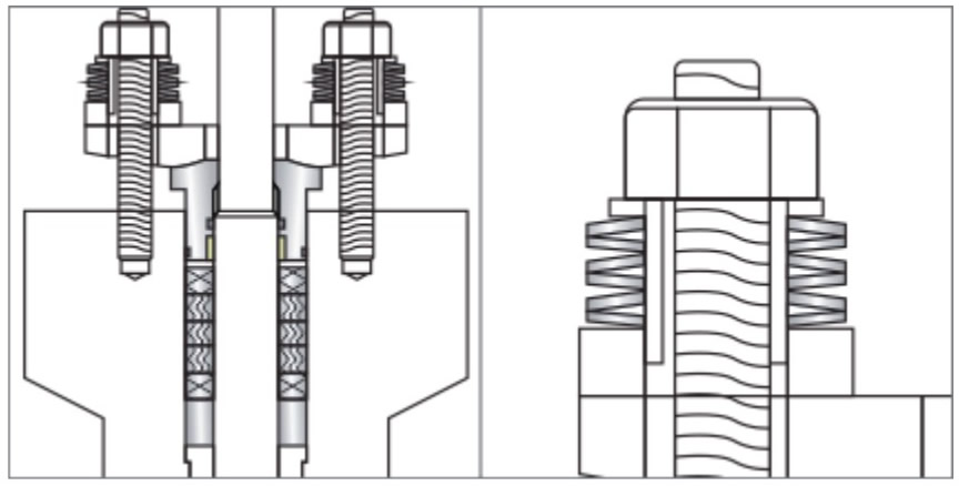 - 填料壓緊機(jī)構(gòu)中設(shè)有蝶形彈簧,提供活載,持續(xù)、穩(wěn)定和均勻壓緊填料。這樣就使得閥門在使用過(guò)程中,即使密封填料磨損后填料密封處所受的密封力可以保持恒定不變,從而確保閥門填料密封長(zhǎng)期有效。